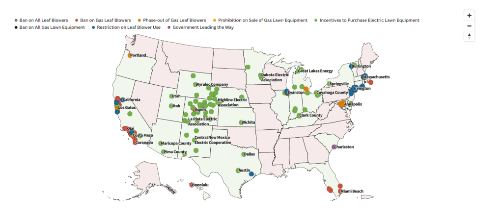 U.S. PIRG has developed an interactive map showing which cities and states have taken action to reduce pollution from gas-powered lawn equipment.